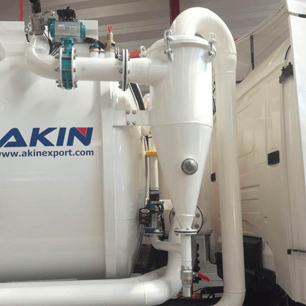 The cyclone secondary shutoffs and moisture trap are designed to be installed in correspondence with the intake line of decompressors used to create vacuum inside tanks. The cyclone secondary shutoff and moisture trap prevents foreign bodies (liquids or solids) that could carry over past the primary shutoff from entering inside the decompressor by blocking the intake line with a stainless steel floating ball. The cyclone consists of a vertical cylinder, which tangentially receives the flow to be scrubbed at high speed. As a result of centrifugal force, the various elements contained inside the fluid are separated according to their density. The purified fluid is freed through the upper axial outlet, whereas the material to be recovered is collected in the lower tapered part of the cyclone and discharged after each job.