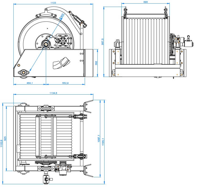 Yüksek basınçlı su kullanarak boru ve kanalların temizlenmesi ve tıkanıklıklarının giderilmesi için makinelere dahil edilmesi amaçlanmıştır. Tipik olarak, tanklarla donatılmış makinelerin arkasına karşılık gelecek şekilde kurulur. Mevcut tüm sabit hortum makaraları, hortumun doğru sarılmasını sağlayan otomatik hortum kılavuz sistemi (versiyona göre üst veya alt hortum presli) ile donatılmıştır. Hortum sarma tamburu üzerinde yüksek basınçlı su besleme borusuna karşılık gelen dönen bir sonsuzun varlığı, sarma ve çözme işlemleri sırasında bile besleme sağlar.